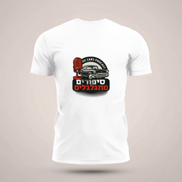 חולצת כותנה שרוול קצר עם פתח צוואר עגול. רנו 5 חוזרת, הדפסה שני צדדים