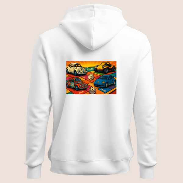סווטשירט עם כובע וכיס גדול מלפנים מוקדש לפולקסווגן חיפושית.